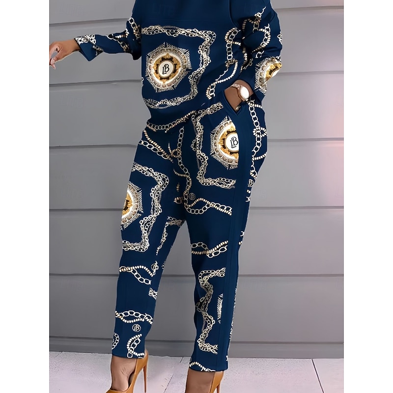 HOT ! Women's Fashion Streetwear Daily Pants Sets Long Sleeve Crew Neck Graphic Color Block Letter Print Casual Daily Black White Red Spring Regular Fit