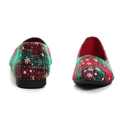 Hee grand Women's Christmas Shoes Comfortable Pointed Toe Slip on Flats Plaid Snowflake Dress Shoes for Christmas Party 7