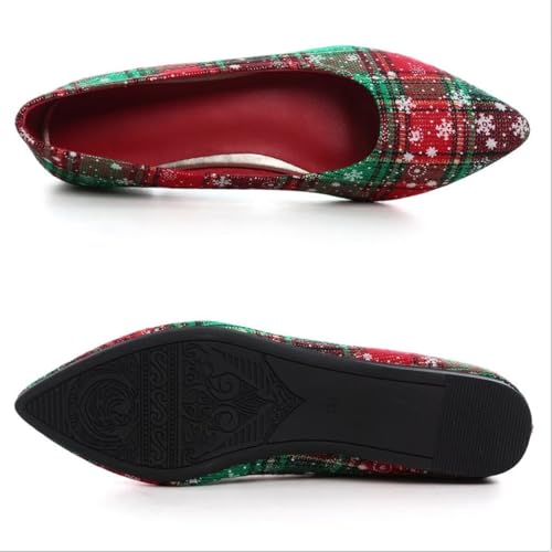 • These Pointed Toe Plaid Snowflake Flat Shoes are perfect for Christmas. The combination of red and green is very festive. It is the best gift for yourself,your lovers,your family and your friend.