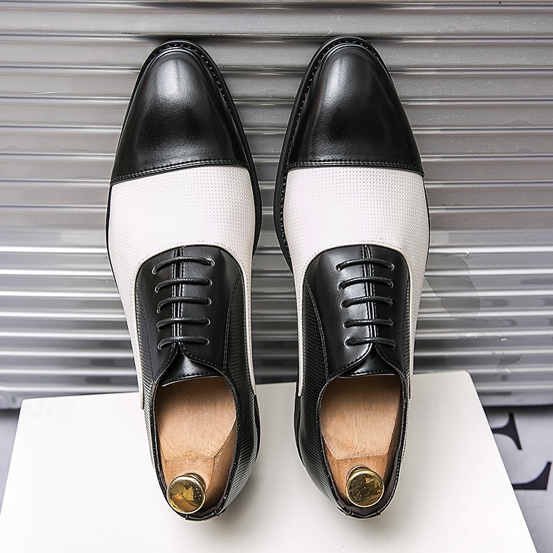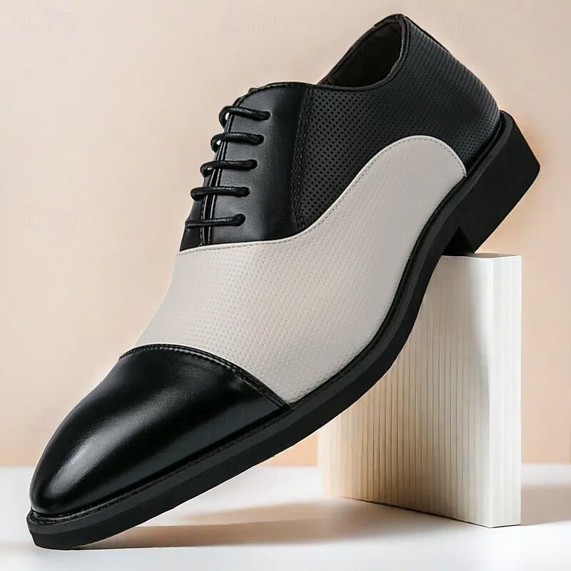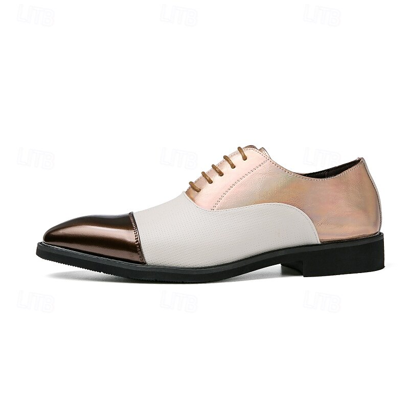 HOT ! Men's Two-Tone Dress Shoes in Bronze and Cream with Lace-Up Design, Stylish Toe Cap for Elegant Formal Events