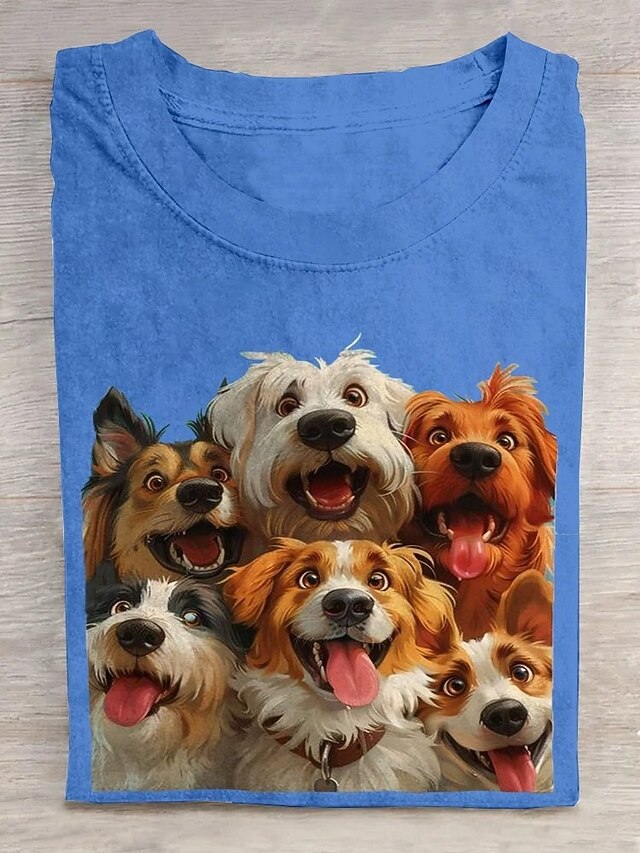Women's T Shirt Graphic Animal Dog Stylish Classic Modern Short Sleeve Crew Neck Round Neck Regular Tops Daily Going out Weekend Print Black White Blue Gray Summer Spring 6