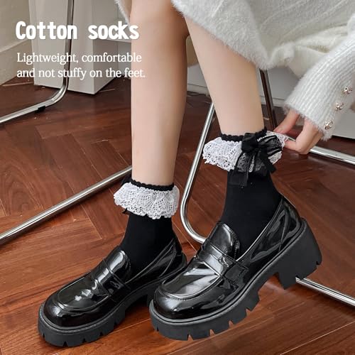 Lace Ruffle Socks for Women, Frilly Ankle Socks with Bow