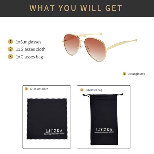 • Oversized Pilot Sunglasses: Inspired by the 1970s, these oversized pilot sunglasses have a timeless sophistication with gold streamline arms, chunky temples for a luxurious, high-end aesthetic. LJCZKA Classic vintage double bridge pilot sunglasses are designed with large frames that are not only aesthetically pleasing, but also offer better protection for your cheeks. Wear them and enjoy the sunshine