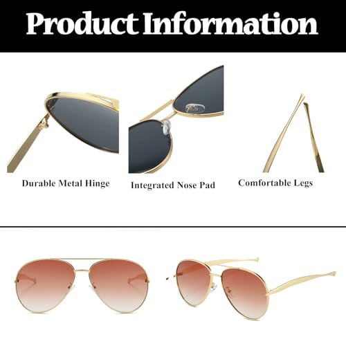 • High Quality Materials: Lightweight and compact high-quality metal frame improve your wearing comfort. These sunglasses are made from high quality lenses, comfortable nose pads(wearing for a long time will not cause discomfort to the nose), reinforced metal hinges, all the details ensure you a long time using
