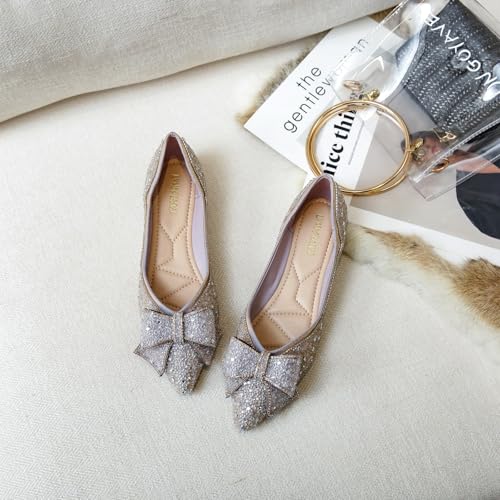 Women's Rhinestone Flat relaxing Pointed Pearl Diamond Ballet Flats for Wedding Parties Work Dates Fashion Flat Shoes