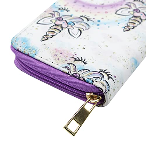 Suillty Cute Unicorn PU Leather Zip Around Long Wallet Cluth Travel Purse for Women Gilrs Ladies (Unicorn C)