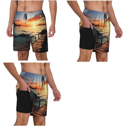 Men's Swim Trunks Quick Dry Board Shorts Seascape Sunset Ocean Beach Beach Shorts with Pocket Bathing Suits for Men 6