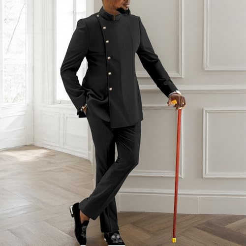 • STYLE -- Fashion & Tribal Style.African Attire for Men,Formal and Designed.This Dashiki suit is made of solid colored fabric, classic and elegant. The top is button closed, and the pants come with two pockets and adjustable drawstrings for easy wearing.This unique set highlight your unique temperament.