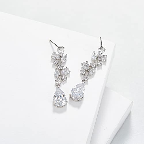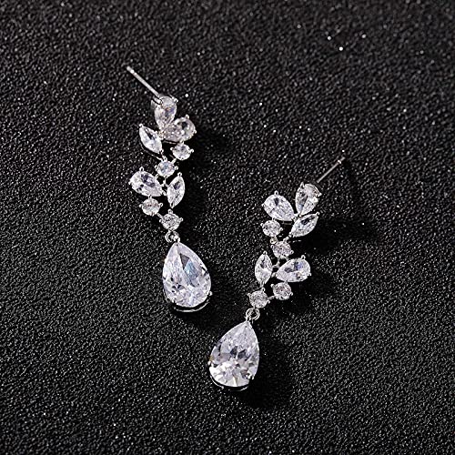 • 【Design】Weddding earrings for brides, bridesmaids with shinning cubic zirconia for Endless Shine and Durability; astonishing bridal earrings created with small marquise, teardrop and round cut cubic zirconia mounted in a leafy setting on the top to create a feminine, romantic glam look.