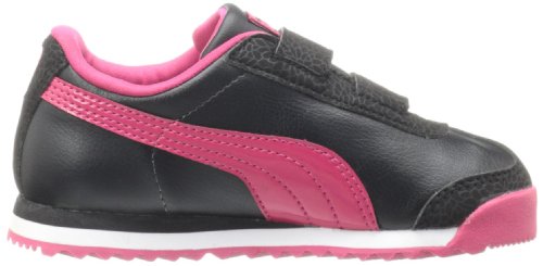PUMA Roma Flower V Fashion Sneaker (Toddler/Little Kid/Big Kid),Black/Virtual Pink/Team Gold,3 M US Little Kid
