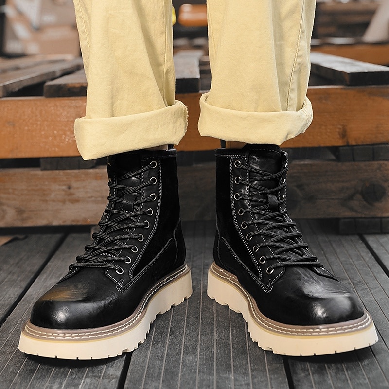Men's Brown Faux Leather Lace-Up Combat Boots – Durable Outdoor Work and Hiking Footwear for Daily Wear and Adventure 18