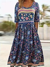 More information about Women's Midi Dress Summer Dress Pleated Dress Vacation Casual Beach Daily Holiday Loose Fit Floral Graphic Short Sleeve Crew Neck Navy Blue Summer