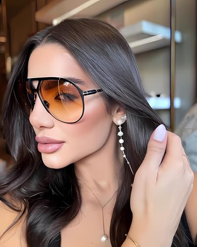 Retro Aviator Sunglasses for Women and Men, Oversized Vintage 70s Style, Tangle-Free Square Frame Sun Glasses 6