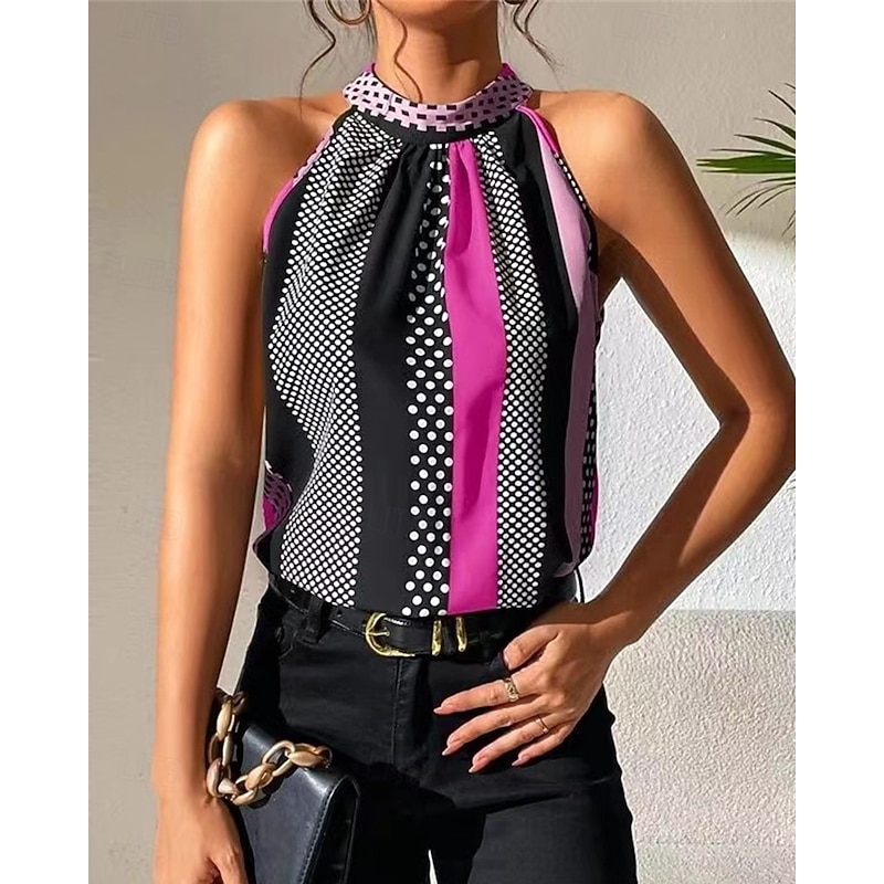 Women's T Shirt Tank Top Tee Top Polka Dot Striped Fashion Modern Sleeveless High Neck Regular Tops Daily Vacation Wear Purple Orange Green Summer 9