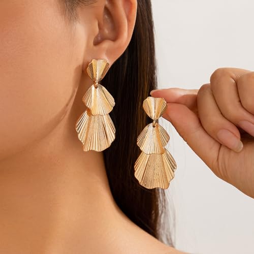 HETICA Gold Leaf Dangle Earrings for Women, Fashion Exaggerated Multi Layer Leaf Stud Earrings Vintage Statement Earrings Jewelry 7