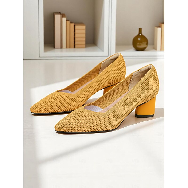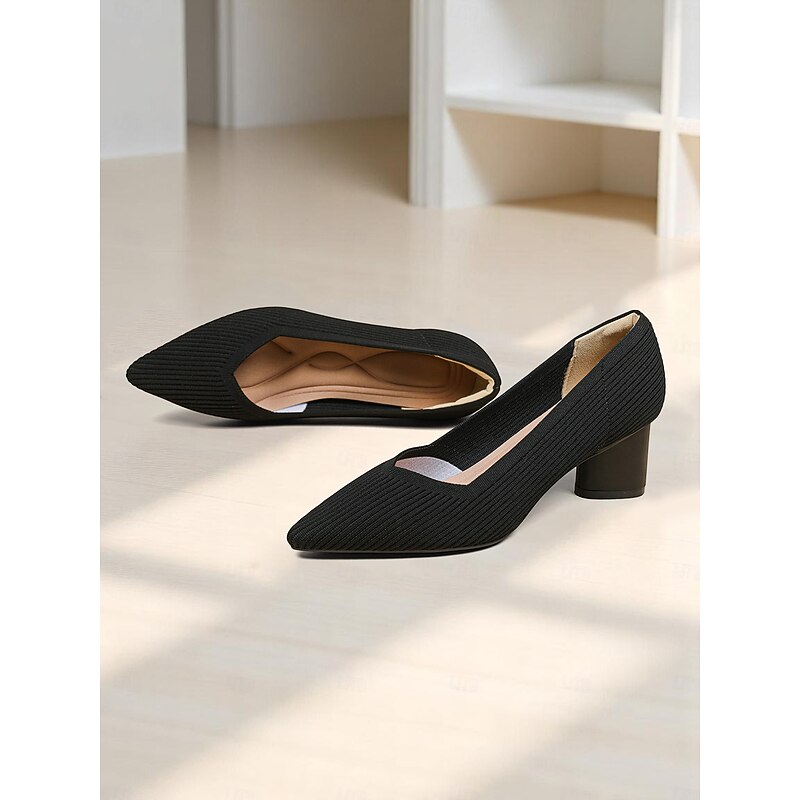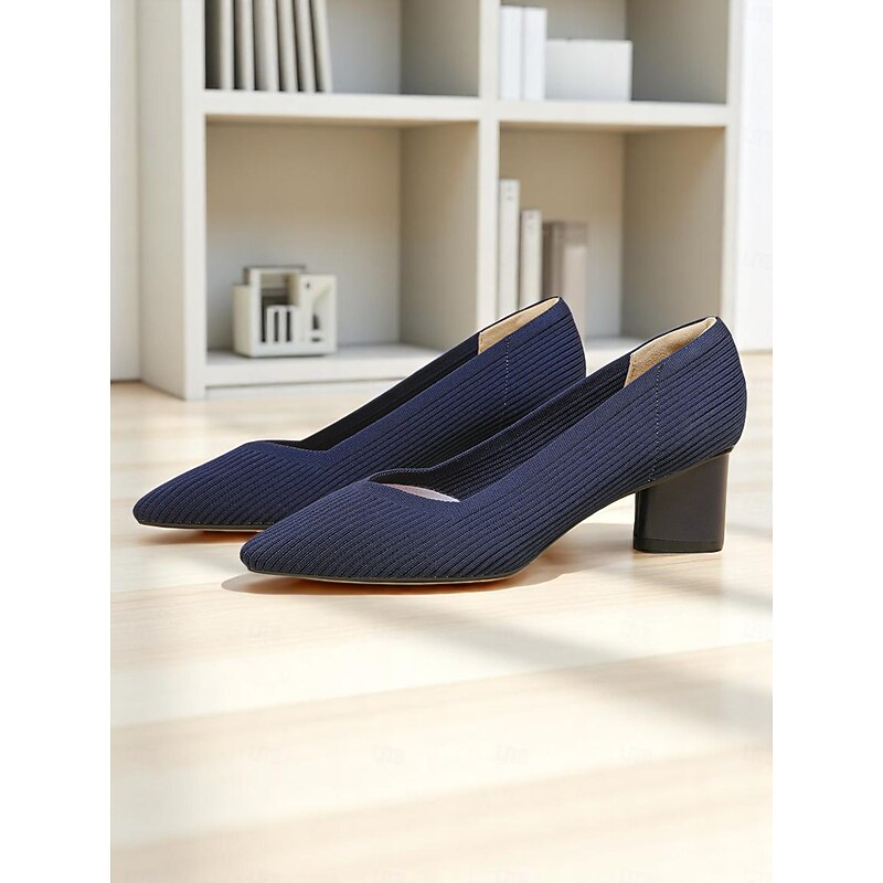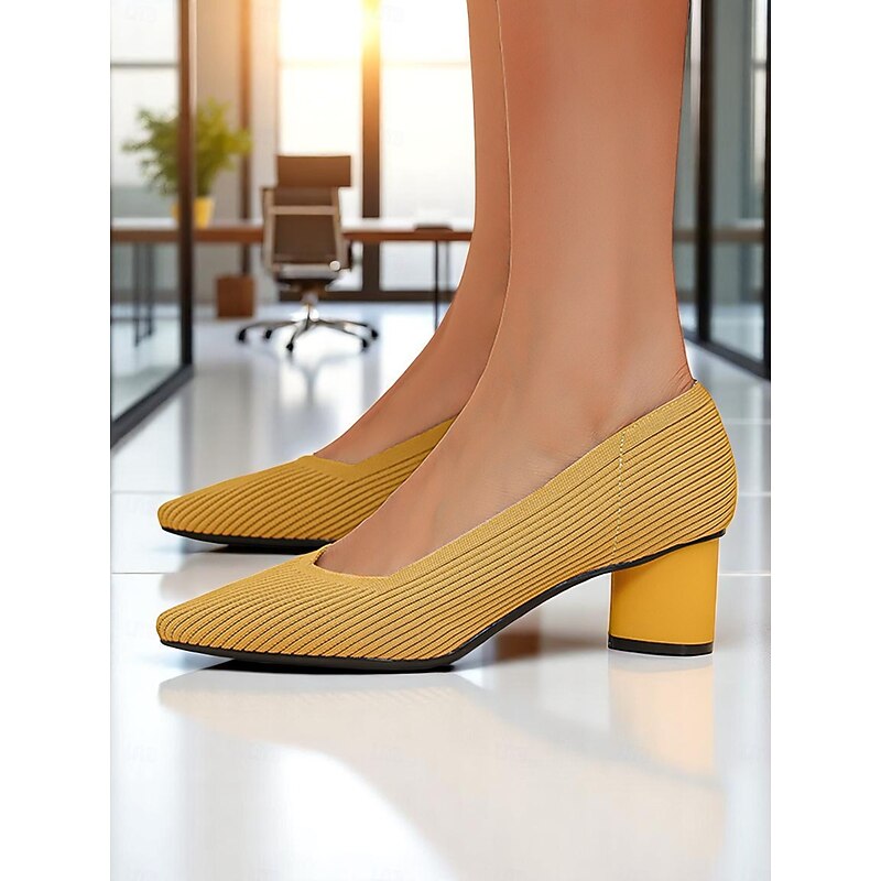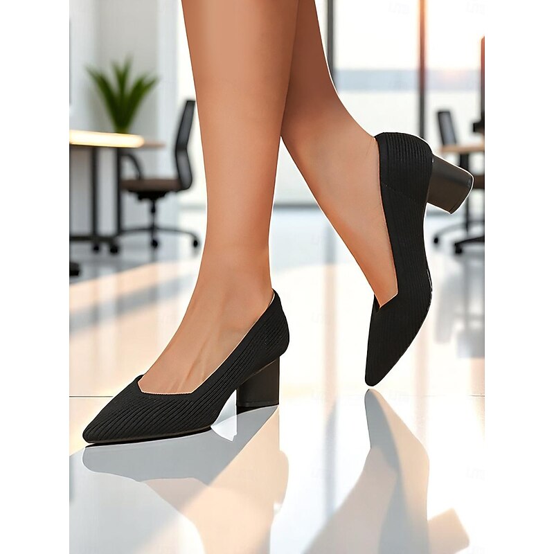 Women's Block Heel Pumps – Elegant Breathable Flyknit Work Heels for Office Professionals 1