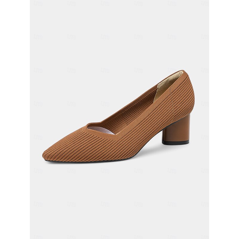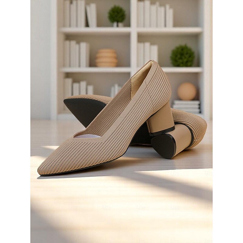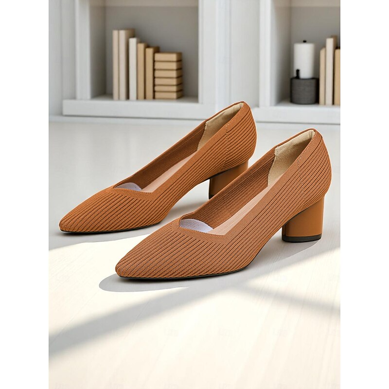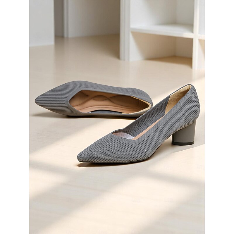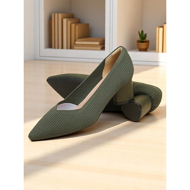 Women's Block Heel Pumps – Elegant Breathable Flyknit Work Heels for Office Professionals 1