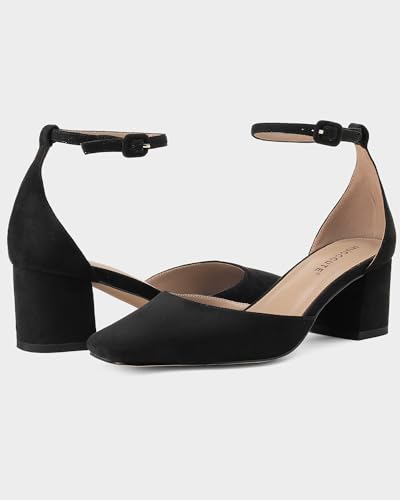 MUCCCUTE Heels for Women Closed Toe Pumps - Chunky Low Heel Block Square Toe Ankle Strap Heels Ladies Business Office Dressy Dress Pumps 1