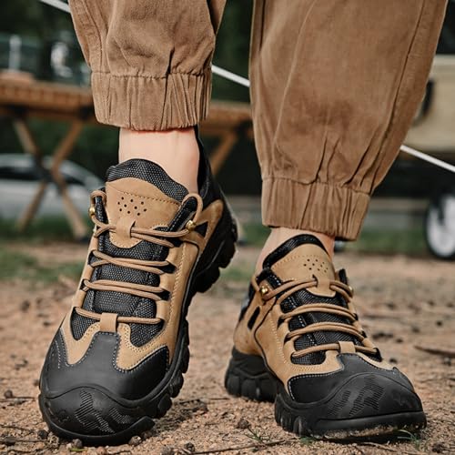 Men's Leather Lace up Breathable Non-Slip Hiking Shoes Soft Low Top Wear-Resistant Lightweight Casual Walking Work Shoes for Outdoor Trailing Trekking 6