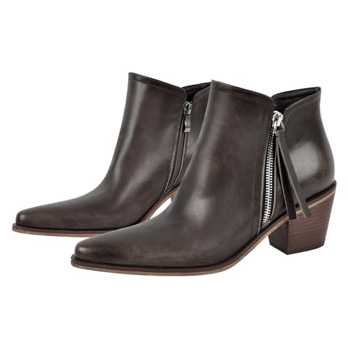 VERISSON Women's Pointed Toe Western Boots Stacked Mid Heel Ankle Boots with side Zippers Nubuck Leather Shoes