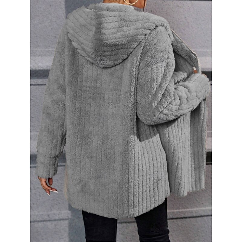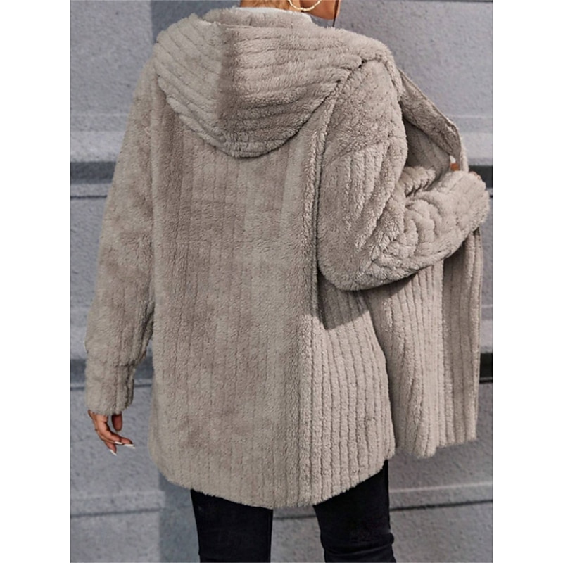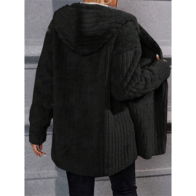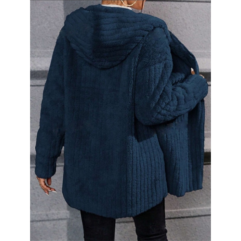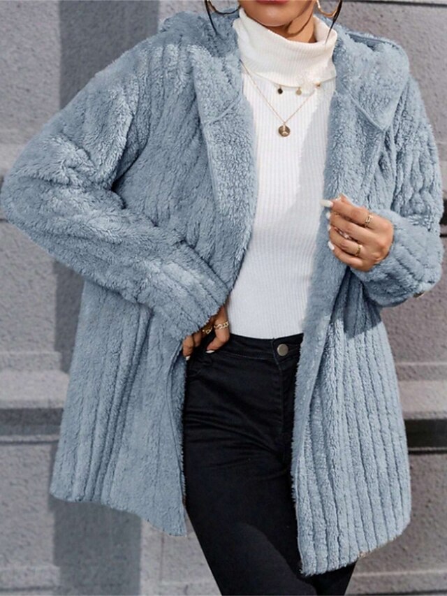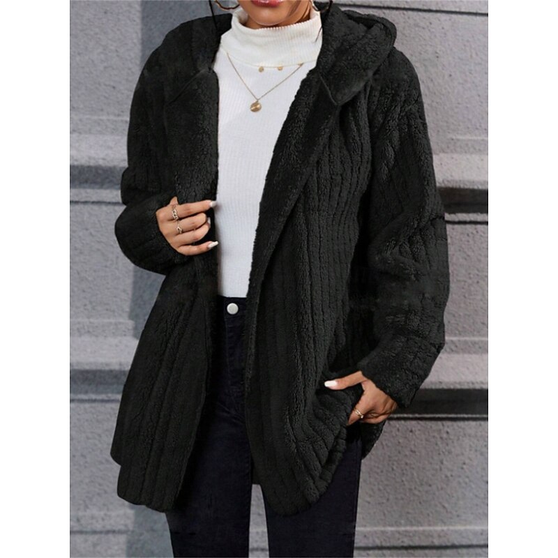 More information about Women's Winter Coat Sherpa Jacket Hoodie Jacket Comfortable Breathable Open Front Casual Plain Vacation Street Casual Daily Wear Open Front Regular Hooded Regular Fit Long Sleeve Outerwear Black Navy