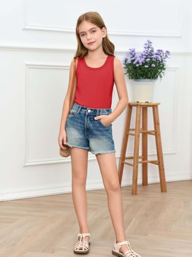 Haloumoning Girls Tank Tops Kids Summer Crewneck Sleeveless Shirts Dancewear 5-14 Years 5