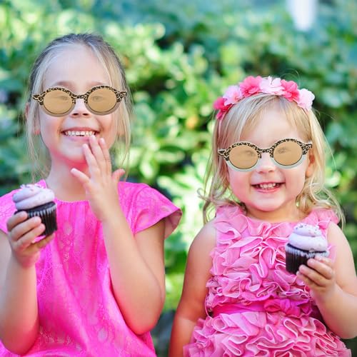 Whaline Sunglasses for Kids Round Leopard Print with 3Pcs Storage Bags Cute Eyewear UV 400 Protection for Summer Beach Party Photography Booth Prop Accessories (3 Pairs) 7