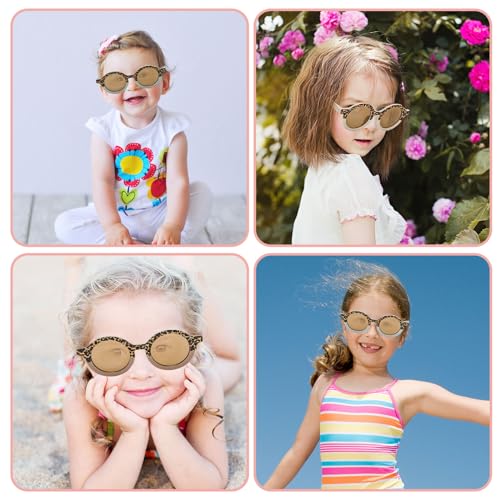 Whaline Sunglasses for Kids Round Leopard Print with 3Pcs Storage Bags Cute Eyewear UV 400 Protection for Summer Beach Party Photography Booth Prop Accessories (3 Pairs)
