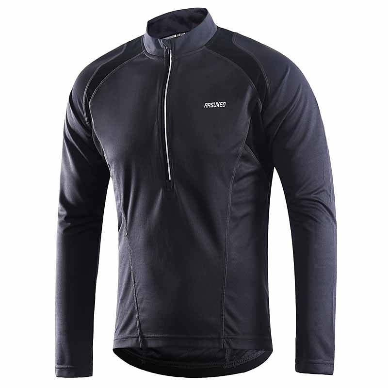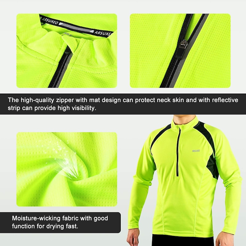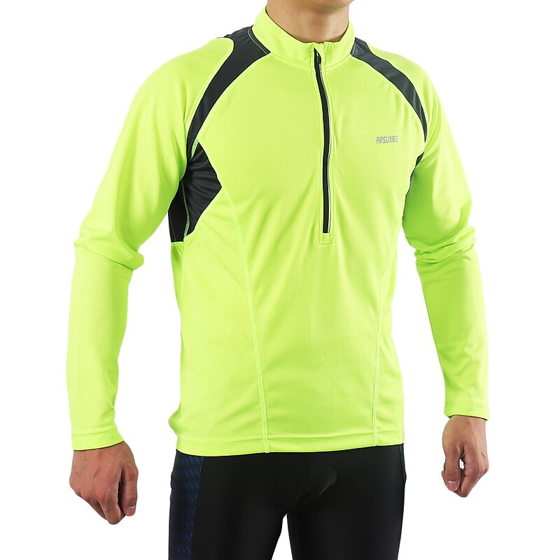 More information about Arsuxeo Men's Long Sleeve Cycling Jersey Downhill Jersey 4 pockets Summer Polyester Green White Dark Gray Solid Color Bike Jersey Mountain Bike MTB Road Bike Breathable Quick Dry Reflective Strips