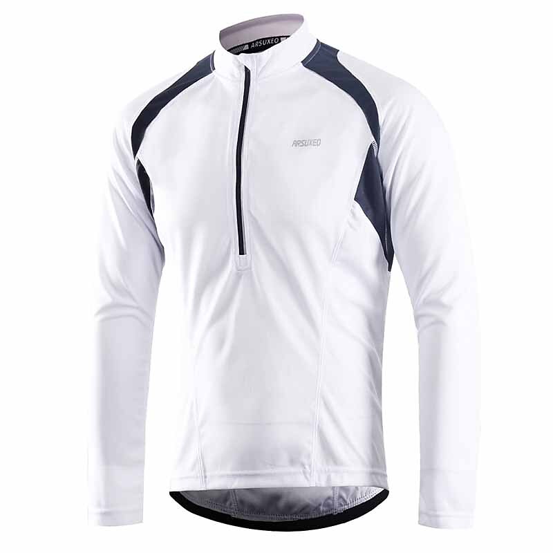 HOT ! Arsuxeo Men's Long Sleeve Cycling Jersey Downhill Jersey 4 pockets Summer Polyester Green White Dark Gray Solid Color Bike Jersey Mountain Bike MTB Road Bike Breathable Quick Dry Reflective Strips