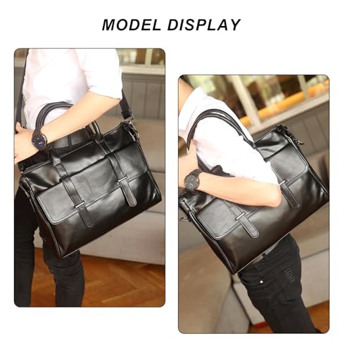 Wesoke Leather Messenger Bag Satchel Bags, Large Sling Briefcase Bag for Men and Women, Waterproof Crossbody Shoulder Handbags with Adjustable Shoulder Strap for Business Office Work Travel, Black 5