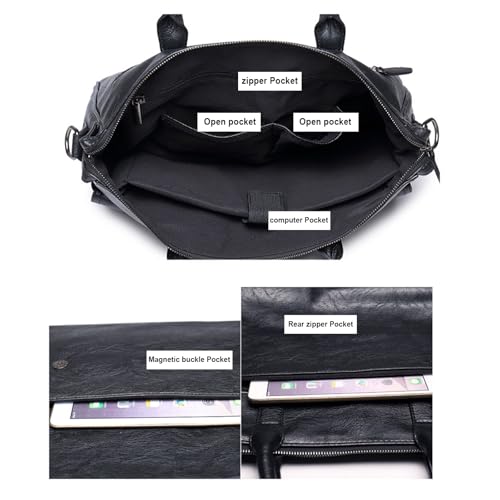 Wesoke Leather Messenger Bag Satchel Bags, Large Sling Briefcase Bag for Men and Women, Waterproof Crossbody Shoulder Handbags with Adjustable Shoulder Strap for Business Office Work Travel, Black 6