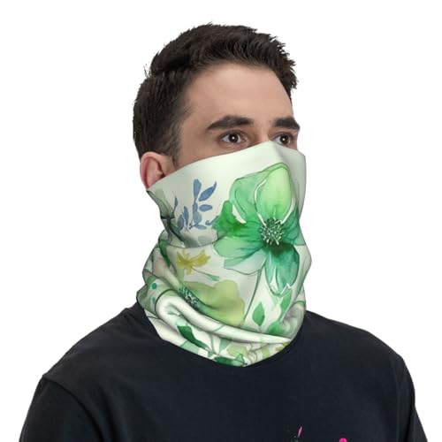 Neck Gaiter Face Mask UV Protector Scarf Breathable Windproof Face Cover Watercolor Green Flowers Balaclava Summer Cooling Gator Cover Seamless Bandana Head Wrap for Men Women 7