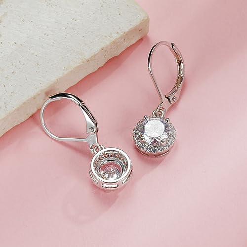 • 【Round Cut Drop Earrings】 A pair cubic zirconia drop dangle earrings packed in a cute jewelry pouch for storage or giving. Also perfect jewelry gift earrings for women, simple and classic.
