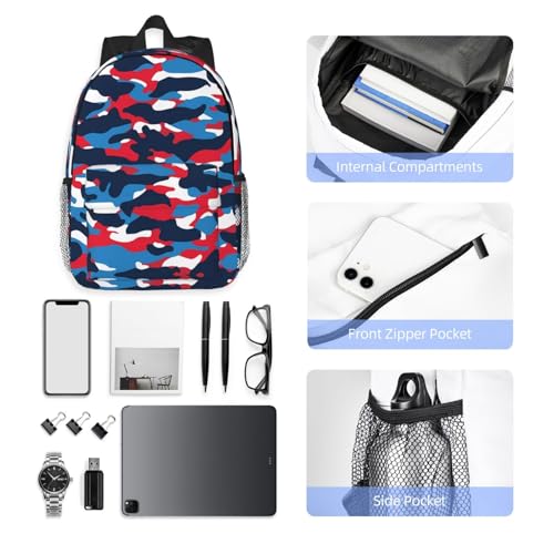 Red White Blue Camouflage American Flag Backpack 15 Inch Laptop Backpacks Casual Daypack Travel Rucksack Sport Backpack Adjustable Straps Work Bags for Gym Camping Hiking 5