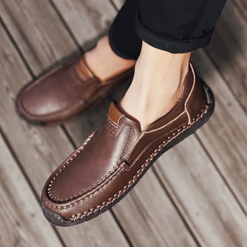 Men's Leather Slip-On Driving Loafers,Trendy Comfortable Hand-Stitching Elastic Non-Slip Flat Dress Casual Shoes 6