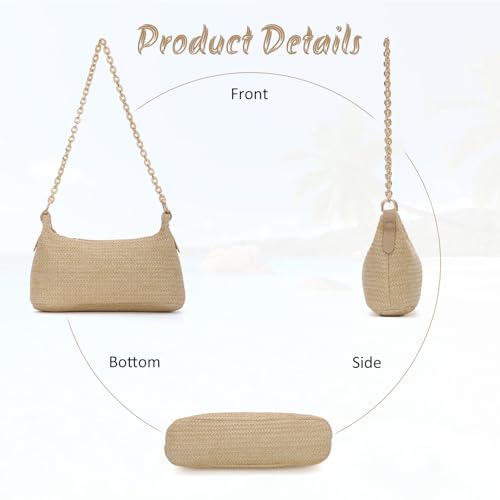 • Chic Style: The shape of the bag is crescent shaped, and the woven texture is clearly visible And equipped with a golden chain shoulder strap, it is very suitable for matching various clothing in spring and summer seasons, whether it is casual T-shirts, shorts, or dresses, it can be well matched with it.