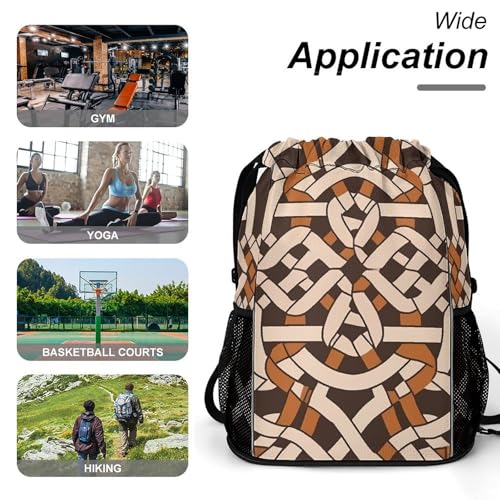 • Drawstring Closure: The Drawcord Closure of the Brown Geometric Pattern Gym Back Pack Serves as Both a Closure and Shoulder Straps. This Cinch Bag Is the impeccable Travel Companion. Workout Backpack Offers Hands-Free Convenience, Relieves Shoulder Strain, And Makes Accessing Your Personal Items simple and Efficient