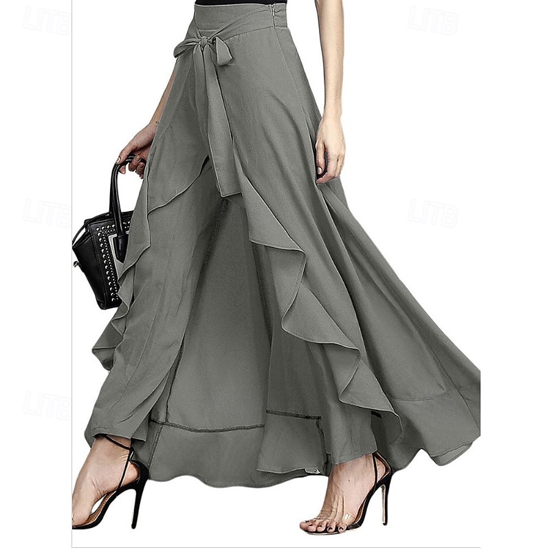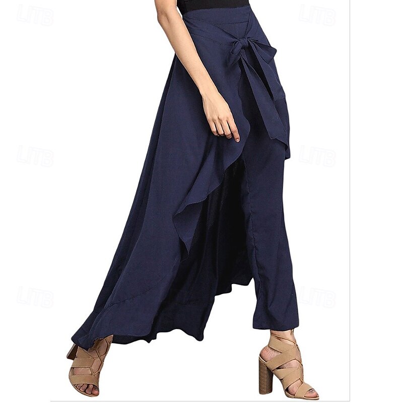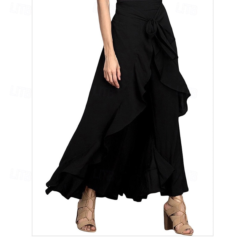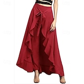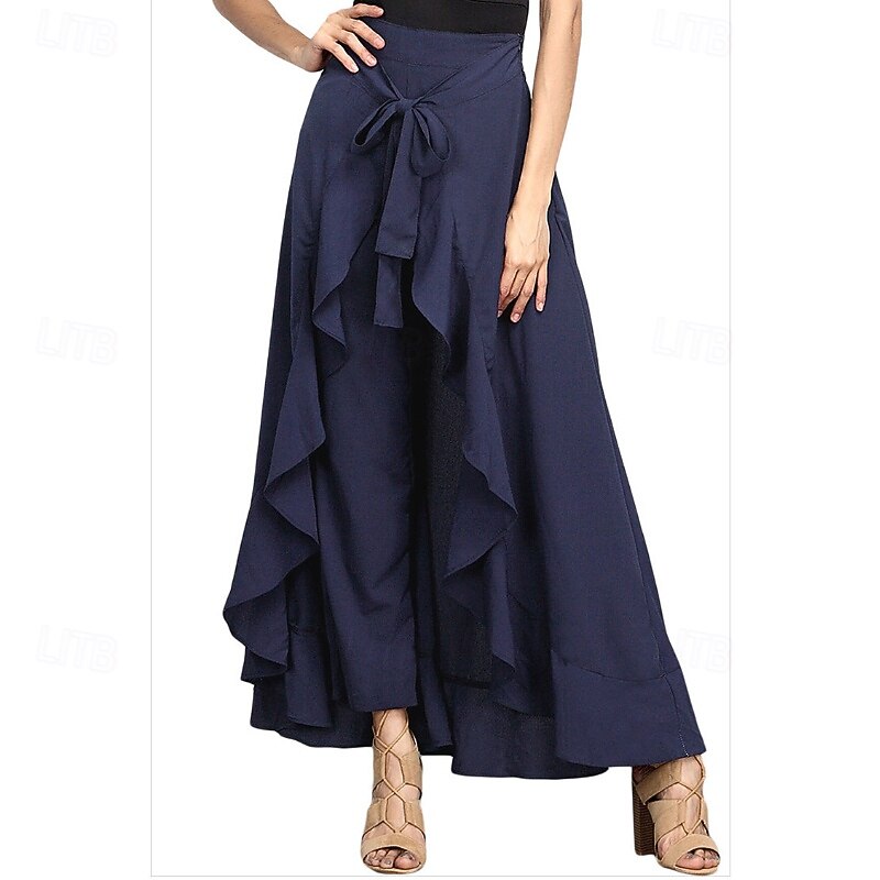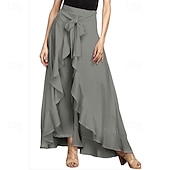 More information about Women's Slacks Pants Trousers Fashion Streetwear Full Length Natural Plain Ruffle Comfy Outdoor Comfortable Street Weekend Magenta Grey Black Dark navy Summer Regular Fit