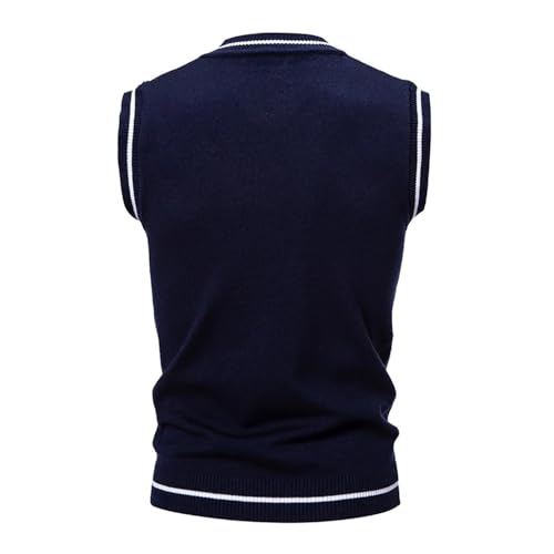Men's Casual Warm Cable Knit Sweater Vest Classic Soft Stretchy Ribbed Hem V Neck Sleeveless Pullover 7