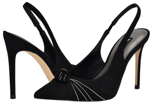 • Step out in style in the Nine West Faive dress slingbacks. It features a stylish pointy toe, knot detailing on the upper and a sky-high stiletto heel. The perfect wardrobe staple! Founded in 1978, Nine West empowers women to take on the world in style, from day to night.