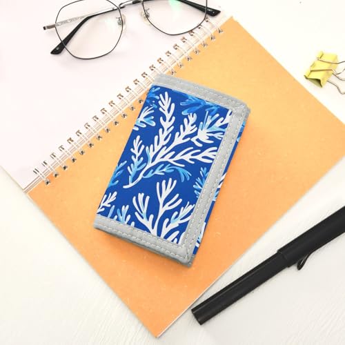 HOT ! ALAZA Kids Wallets for Boys Girls Toddler Trifold Wallet Children Small Seaweed Kelp Blue with Zipper Coin Pocket