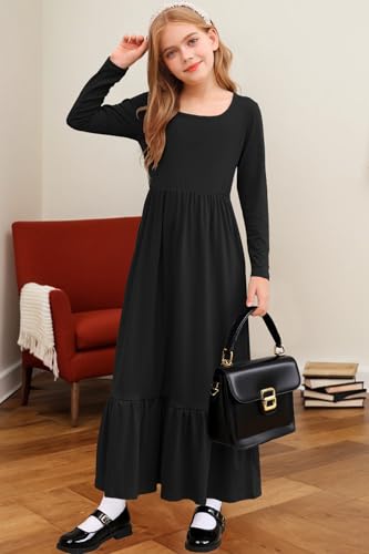 • Design:This girls fall maxi dress features a square neckline, long sleeves, classic solid color, elastic high waist, flowy ruffle tiered hem, combined with an A-line cut and two side pockets for a chic yet relaxed look