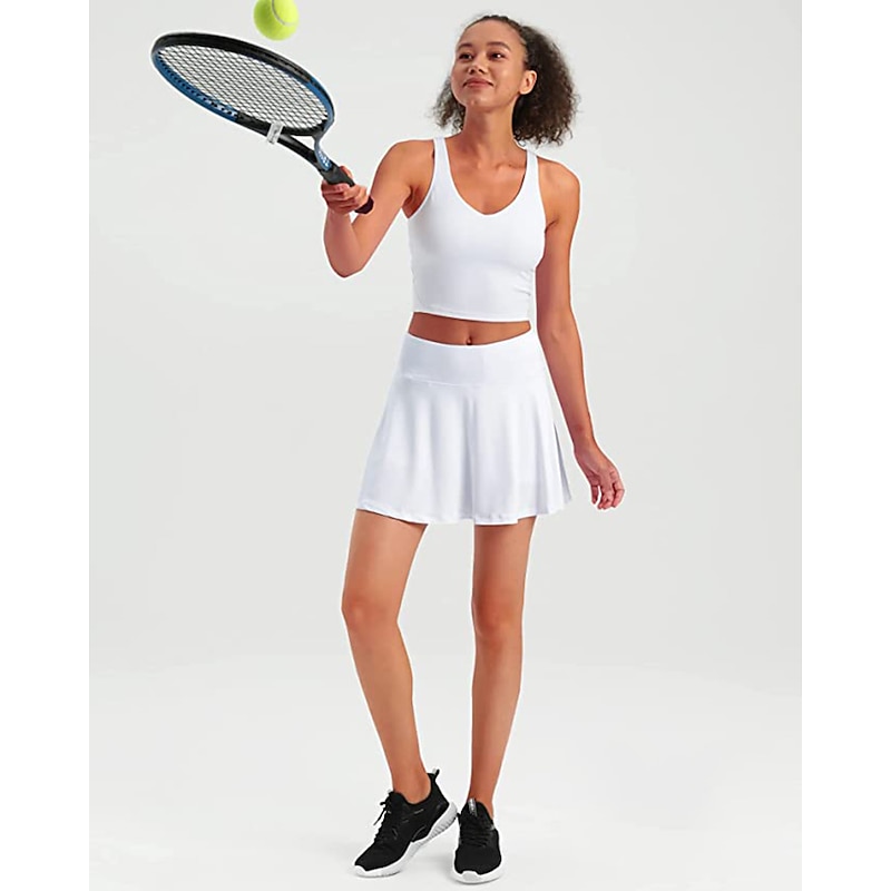 Women's Tennis Skirts Golf Skirts Side Pockets 2 in 1 Sun Protection Tennis Golf Badminton Skort Solid Color Red Burgundy Purple Spandex Sports Activewear High Elasticity 12