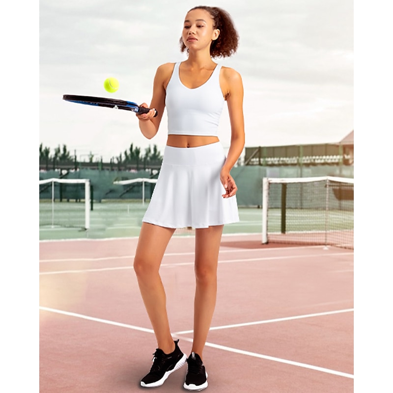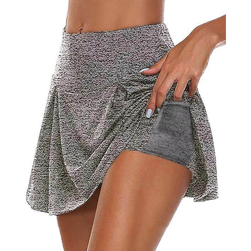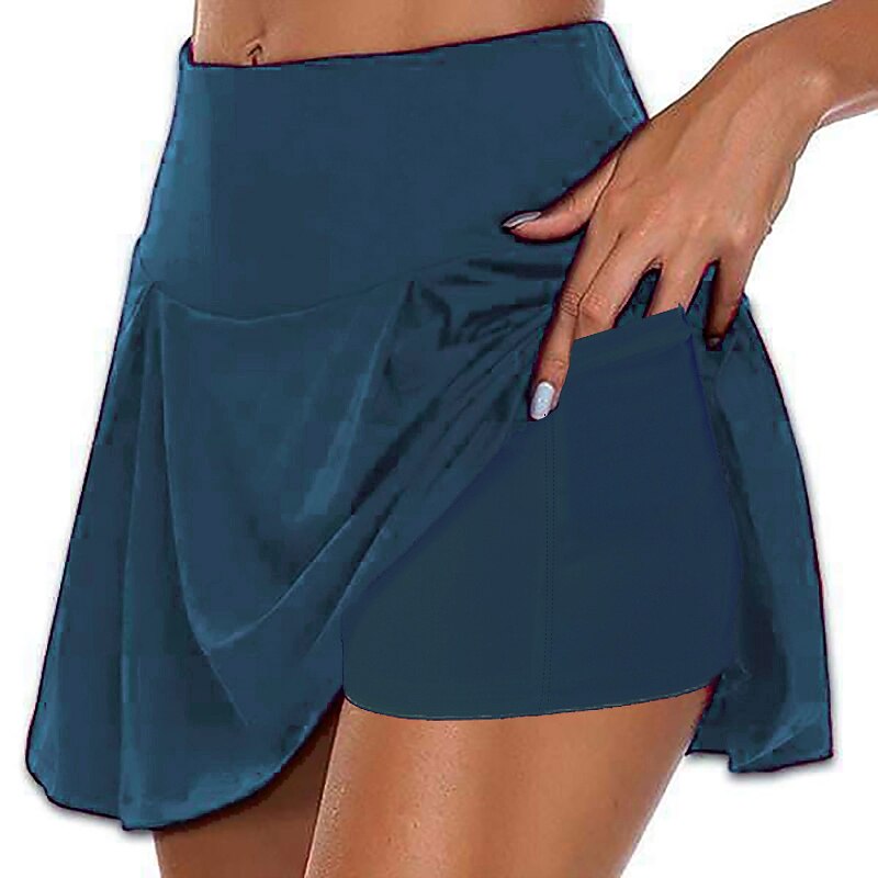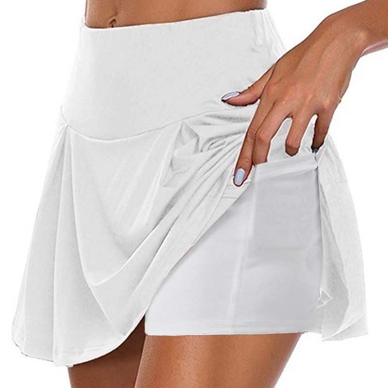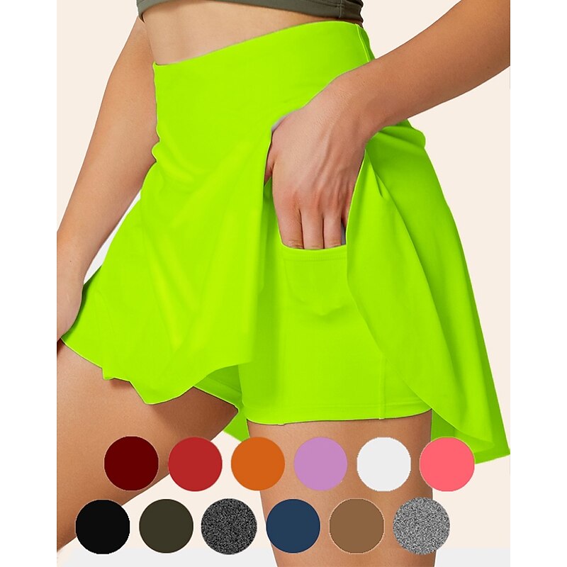 Women's Tennis Skirts Golf Skirts Side Pockets 2 in 1 Sun Protection Tennis Golf Badminton Skort Solid Color Red Burgundy Purple Spandex Sports Activewear High Elasticity 21