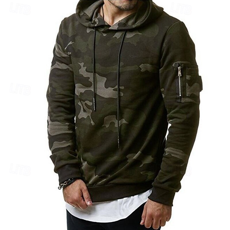 Men's Hoodie Pullover Hoodie Sweatshirt Fleece Hoodie Tactical Hoodie Green Gray Hooded Camouflage Pocket Sports & Outdoor Daily Streetwear Casual Workout Athletic Fall Clothing Apparel Hoodies 1