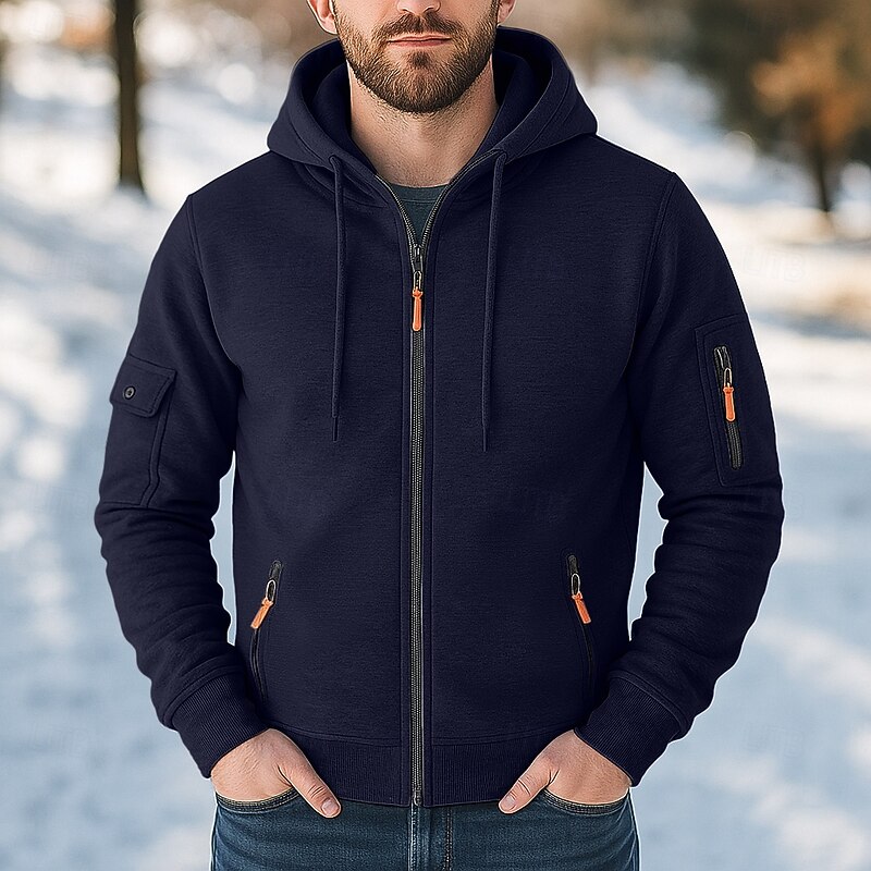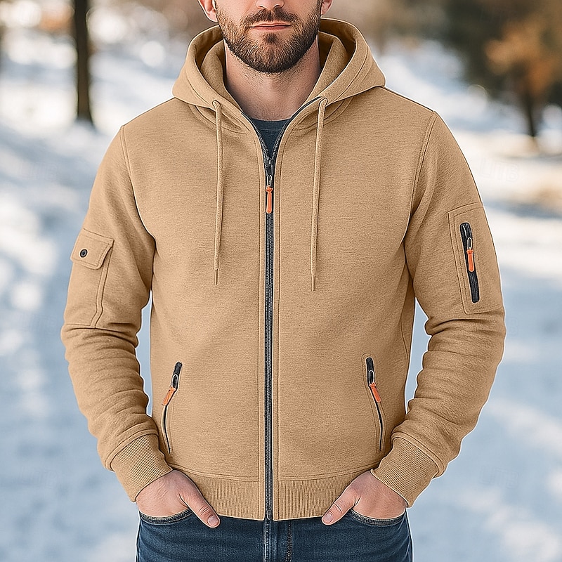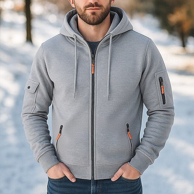 More information about Men's Hoodie Full Zip Hoodie Tactical Hoodie Navy Blue Khaki Dark Gray Gray Hooded Plain Zip Up Zipper Pocket Sports & Outdoor Daily Holiday non-printing Streetwear Cool Casual Winter Spring & Fall