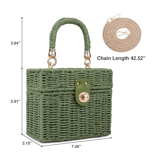 Handwoven Rattan Bag for Women Wicker Crossbody Shoulder Bag Straw Beach Tote Bag Top Handle Satchel Handbag with Chain Strap 6