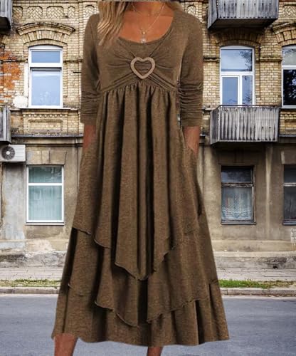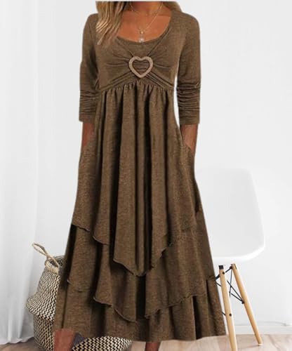 Women's Long Sleeve Round Neck cherish Layered Irregular Cake Dress Splicing Plaid High Waisted Fluttering Dresses