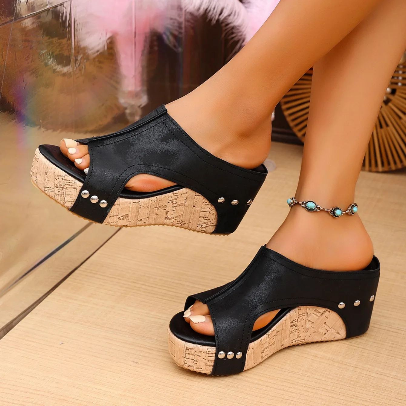 Women Summer Open Toe Wedge Sandals Non-slip Thick-sole Retro Slip On